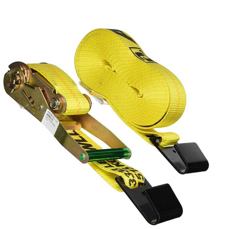 2" x 27' Yellow Flat Hook Ratchet Strap