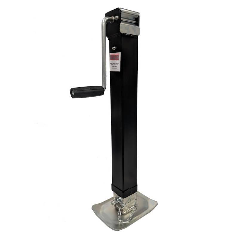 RAM Sidewind weld-on square trailer jack with drop leg. Rated for 7000 lbs. capacity lift and 8000 lbs. capacity supporting weight limits. Comes standard with a black painted outer tube and durable zinc coated inner tube. Includes extendable drop leg with quick pin for easy adjustment. Comes with grease zerk already pressed in for easy greasing of the jack. Jack is ideal for use with ag, industrial, commercial, recreational, and many other types of utility and cargo trailers. This jack is most commonly used on dump trailers and is ideal for improving ground clearance.